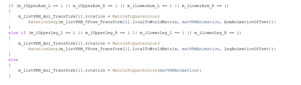 이를 해결하기 위한 방안으로 VRM 모델링의 팔다리 뼈대에 가해지는 애니메이션 비율을 조절한다.